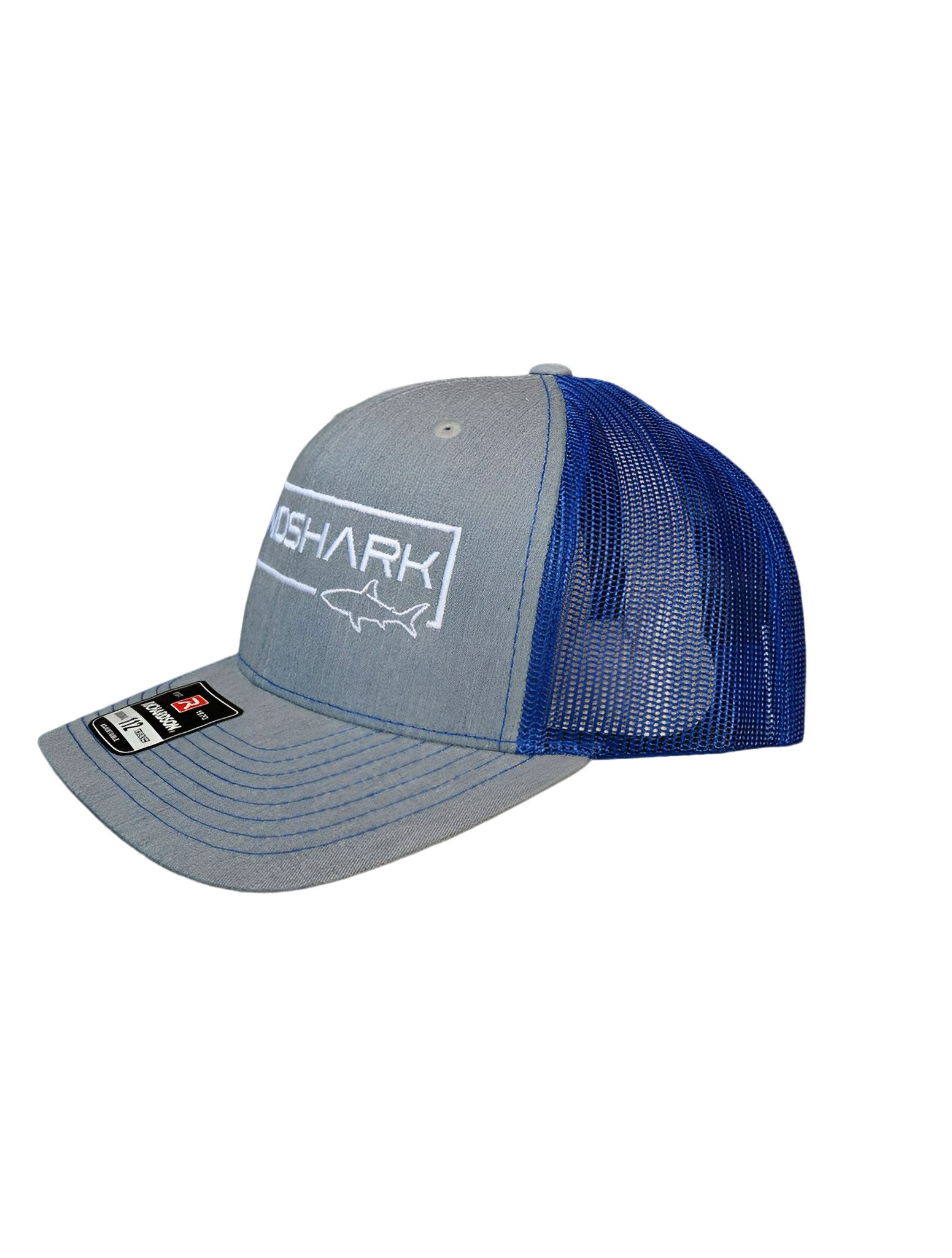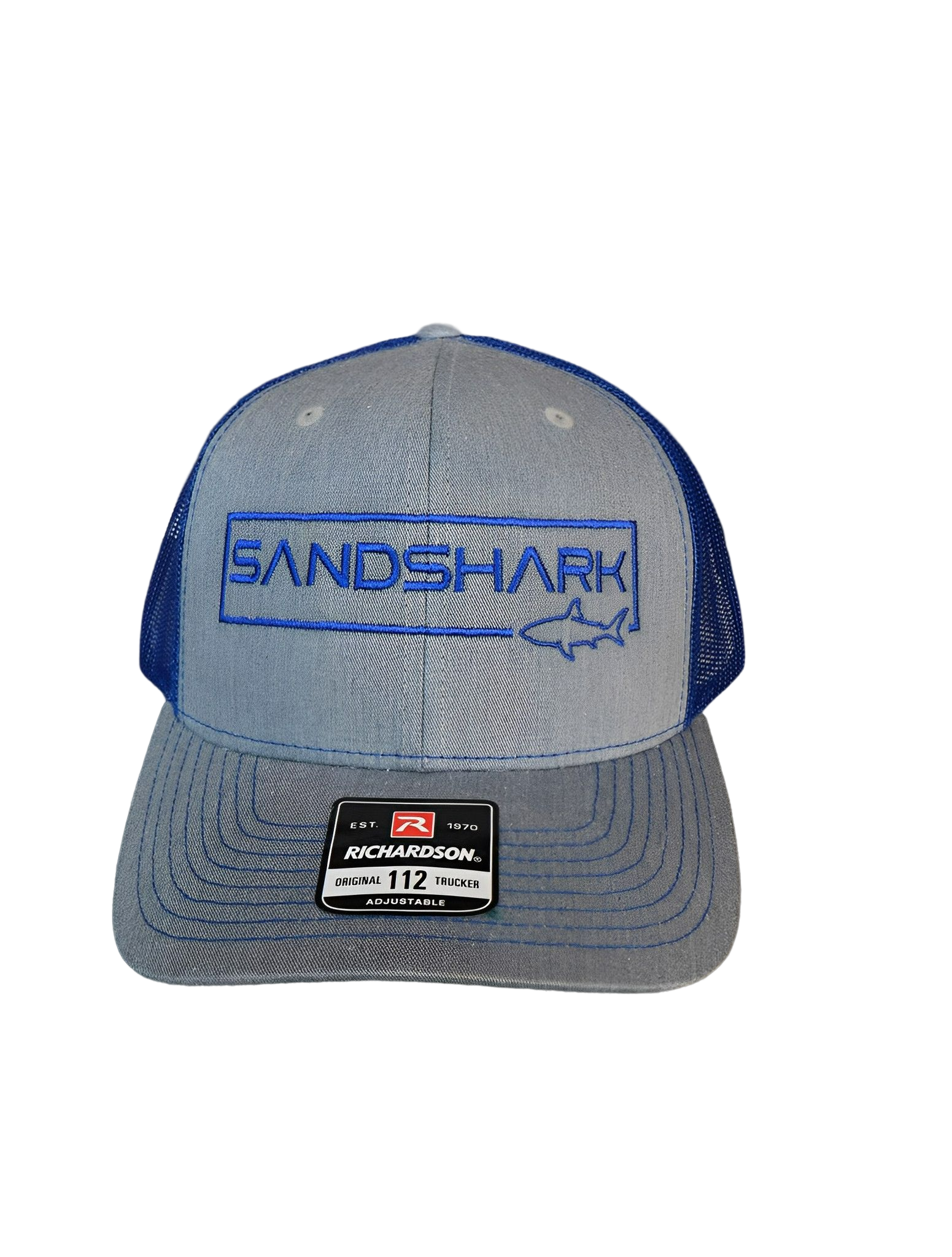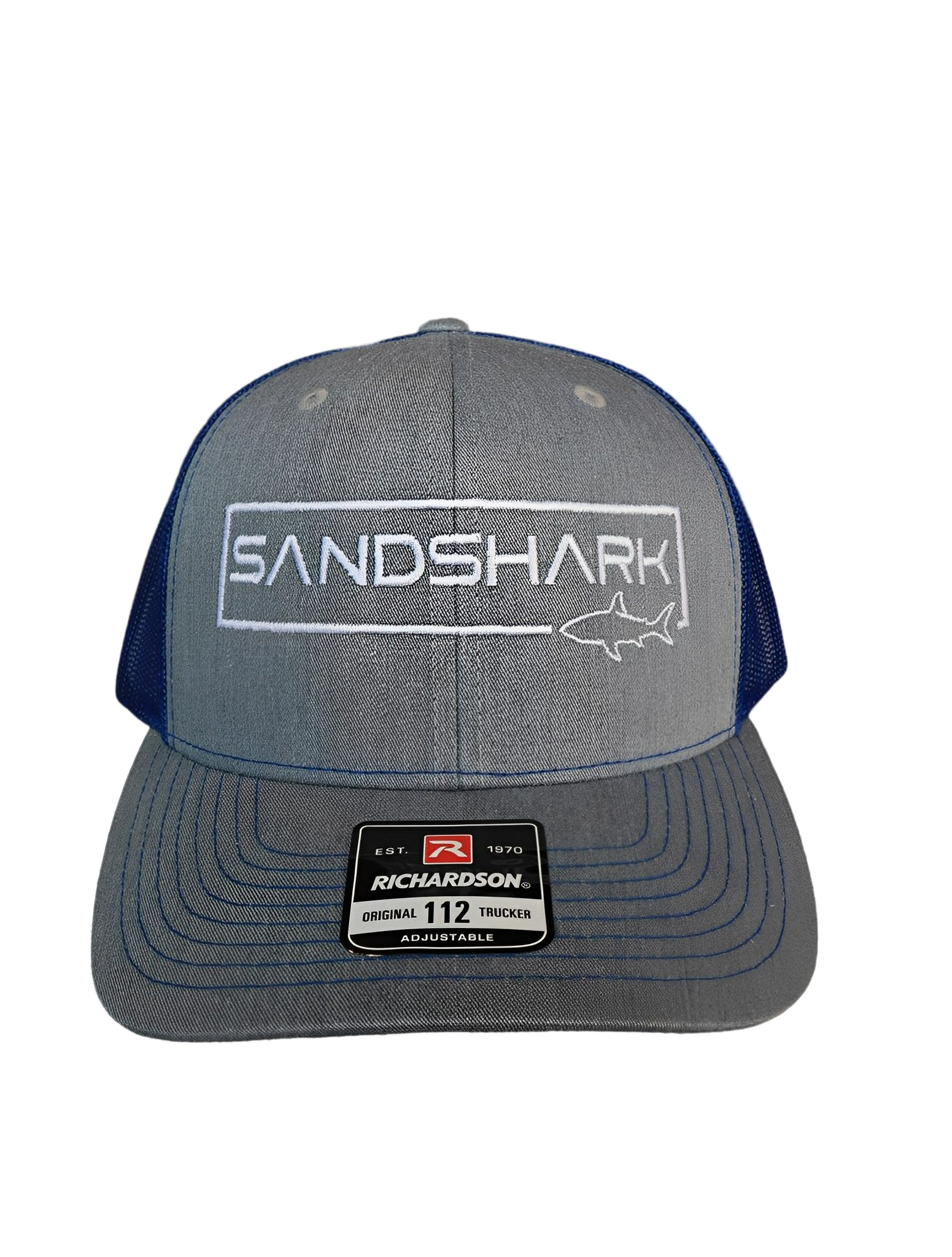 Classic trucker cap style built with the Richardson quality and fit you’ve come to expect. Stay stylish and protected from the sun with the Charcoal & Blue Mesh Trucker Hat by SandShark USA. Featuring a bold blue SandShark on the front, this hat is the perfect accessory for all your outdoor adventures. Available with white SandShark front.